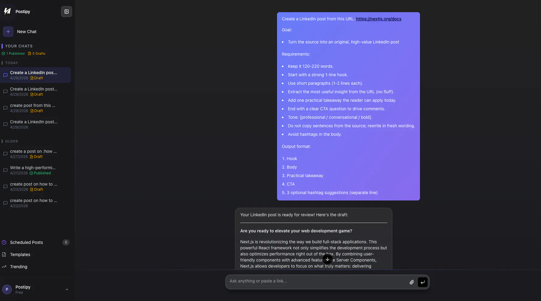 Generate LinkedIn Post from URL in Minutes | Postipy